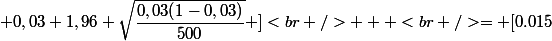 [0.03-196x√0.03(1-0.03) ; 0.03+1.96 x √0.03(1-0.03) ]