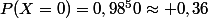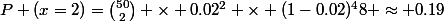 On cherche P (x=2)=(50) x0.02² x (1-0.02)48