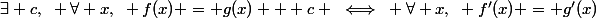 = g(x) + c ~\Longleftrightarrow~ \forall x,~ f'(x) = g'(x))