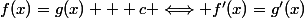 =g(x) + c \Longleftrightarrow f'(x)=g'(x))