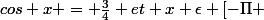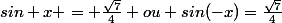 Par contre je coince ici, on me demande de déterminer sin x, or je trouve un sin x positif alors que x est dans le négatif. Qu'est-ce que je fais ?? Merci