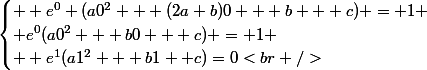 0 + b + c) = 1 \\ e^0(a0^2 + b0 + c) = 1 \\ e^1(a1^2 + b1+ c)=0<br />\end{cases})