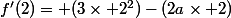 Pour cela il faut que je trouve a dans la fonction dérivé, donc j'ai remplacé x par 2 :