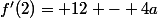 tu devrais reconsidérer ton affirmation selon laquelle f'(2) = 5, ce n'est pas trop le genre de chose qui arrive pour un minimum... :frime: