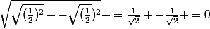 ^2} -\sqrt{(\frac{1}{2}})^2} =\frac{1}{\sqrt{2}} -\frac{1}{\sqrt{2}} =0)