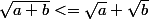 La racine carrée d'une somme n'est presque jamais égale à la somme des racines carréesLe seul cas d'égalité, c'est quand l'un des nombres est nul.