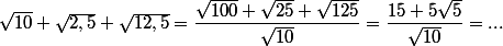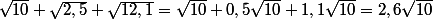 Je souhaite ajouter les racines carrées de 10, de 2,5 et de 12,5.