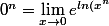 }}=\lim_{x \to0}{e^{nln(x)}}=\lim_{y\to-\infty}{e^y}=0)