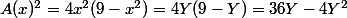 ^2=4x^2(9-x^2)=4Y(9-Y)=36Y-4Y^2)