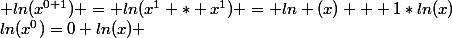 =0 ln(x) & ln(x^{0+1}) = ln(x^1 * x^1) = ln (x) + 1*ln(x))