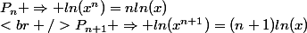 =nln(x)\\<br />P_{n+1} \Rightarrow ln(x^{n+1})=(n+1)ln(x))