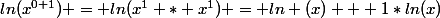 = ln(x^1 * x^1) = ln (x) + 1*ln(x))