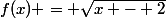 Racine : = \sqrt{x - 2})