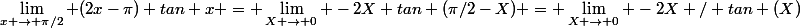 tan x = \lim_{X \to 0} -2X tan (\pi/2-X) = \lim_{X \to 0} -2X / tan (X))
