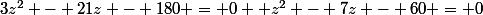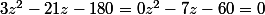 Ça donnerais : 3Z²-21Z-180=0