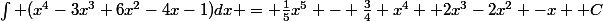 dx} = \frac{1}{5}x^5 - \frac{3}{4} x^4 +2x^3-2x^2 -x +C)