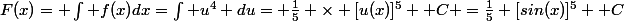 = \int {f(x)dx}=\int {u^4 du}= \frac{1}{5} \times [u(x)]^5 +C =\frac{1}{5} [sin(x)]^5 +C)