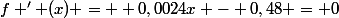 suspente la plus courte se situera au niveau du sommet de la parabole (qui est ici un minimum), où la dérivée de f s'annule ( la