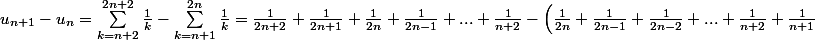 Tu devrais écrire l'expression de Un et Un+1 l'un au dessus de l'autre. Et tu vas voir que quand tu fais la soustraction, il y a beaucoup de terme qui se simplifie