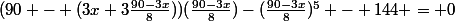 )(\frac{90-3x}{8})-(\frac{90-3x}{8})^5 - 144 = 0)