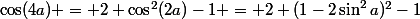 1)Calculer la valeur exacte de cos 4a et vérifier que sin a = cos 4a.