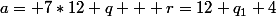 1 a) a=84 q +r et les valeur possibles de r sont r=0,....,83.