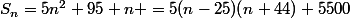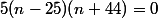 Vérifier que 5 n² + 95 n - 5500 = 5 (n-25) (n+44)