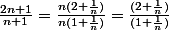 }{n(1+\frac{1}{n})}=\frac{(2+\frac{1}{n})}{(1+\frac{1}{n})})