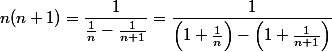=\dfrac{1}{\frac{1}{n}-\frac{1}{n+1}}=\dfrac{1}{\Big(1+\frac{1}{n}\Big)-\Big(1+\frac{1}{n+1}\Big)})