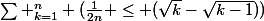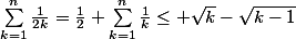 Σ 1/(2k)< 1-0+ ..+√n+√(n-1) qui s éliminant membre à membre