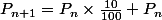 Il suffit de dire que P(n+1) s'obtient en multipliant la valeur d'avant qui est P(n) par 10/100.. puis ajouter P(n). Cela fait quoi?