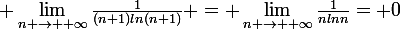 ln(n+1)} = \lim_{n \to +\infty}\frac{1}{nlnn}= 0)