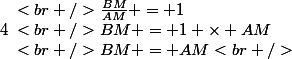(xm-xb)+(ym-yb)}}{{(racine carre)(xm-xa)+(ym-ya)}}=1)