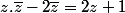 je me retrouve donc avec 2z+1(z-2) mais j'ai du mal à différencier ce que vaut z , z barre et z' ..