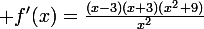 ta dérivée est bonne de plus tu obtients f'=(1+(3/x)^2)*((1-3/x)*(1+3/x), sachant que 1-81/x^4=1-[(3/x)^2]^2 ! @ +
