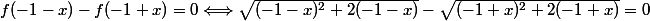 -f(-1+x)=0\Longleftrightarrow\sqrt{(-1-x)^2+2(-1-x)}-\sqrt{(-1+x)^2+2(-1+x)}=0)