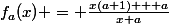 = \frac{(xa+x+a)'(x+a) - (xa+x+a)}{(x+a)^2} \\ <br /><br />\Rightarrow f'_a(x) = \frac{(a+1)(x+a) - [x(a+1)+a)]}{(x+a)^2} \\<br /><br />\Rightarrow f'_a(x) = \frac{(a+1)(x+a)-x(a+1)-a}{(x+a)^2} \\<br /><br />\Rightarrow f'_a(x) = \frac{(a+1)(x+a)}{(x+a)^2} - \frac{x(a+1)+a}{(x+a)^2} \\<br /><br />\Rightarrow f'_a(x) = \frac{(a+1)}{(x+a)} - \frac{x(a+1)+a}{(x+a)^2})