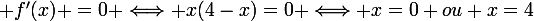 Donc f'(x) s'annule ppur x=4 ? ET x=0