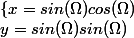 cos(\Omega)\\y=sin(\Omega)sin(\Omega))