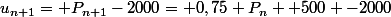 2° a) Je sais qu'il faut prouver que Un+1/Un= une constante mais je trouve 0,75Pn-1500/Pn-2000 et je ne sais pas comment trouver un facteur commun pour faire partir les Pn