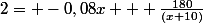 je trouve 4 - 2 = -0,08x + 180/(x+10)