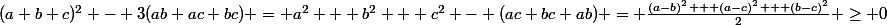 ^2 - 3(ab+ac+bc) = a^2 + b^2 + c^2 - (ac+bc+ab) = \frac{(a-b)^2 + (a-c)^2 + (b-c)^2}{2} \geq 0)