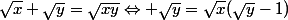 J'ai tenté une démarche mais ne suis bloqué : vu qu'il ne faut pas résoudre l'équation mais bien seulement le nombre de solutions, j'ai voulu transformer chaque membre en une fonction, isoler y, et trouver les intersections entre ces fonctions. Mais le problème c'est que je n'arrive pas à isoler y.