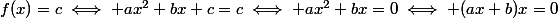 =c\iff ax^2+bx+c=c\iff ax^2+bx=0\iff (ax+b)x=0)