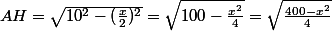 téva a écrit:ABC triangle isocèle en A avc AB=AC=10 cm H est le pied de la hauteur issue de A