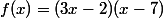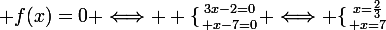 =0 \Longleftrightarrow \{{3x-2=0\atop x-7=0} \Longleftrightarrow \{{x=\frac{2}{3}\atop x=7})