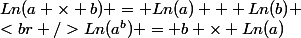 = Ln(a) + Ln(b) \\<br />Ln(a^b) = b \times Ln(a))