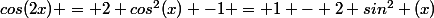 = 2 cos^2(x) -1 = 1 - 2 sin^2 (x))
