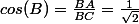 =\frac{BA}{BC}=\frac{1}{\sqrt{2}})