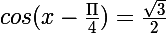 cos(x-pi/4)=(racine3)/2